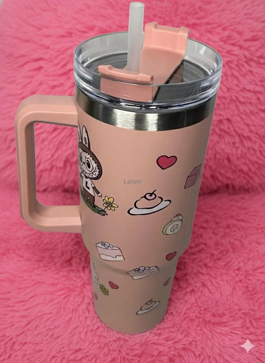 El color rosa le da un toque delicado y femenino, mientras que su estética juguetona inspirada en Labubu lo hace llamativo y divertido, ideal tanto para uso personal como para regalar. Además, es un recipiente ecoamigable, ya que el uso de la pajilla reutilizable contribuye a reducir el consumo de plásticos desechables.